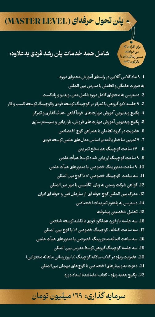 • به درآمدی پایدار از طریق کوچینگ دست پیدا کنید و استقلال زمانی و مکانی داشته باشید.